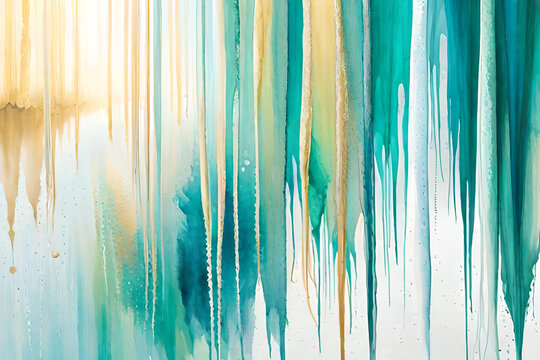 Golden wave of marbled yellow and blue abstract watercolor paint with fluid swirls and lines, creating a liquid ocean texture banner illustration