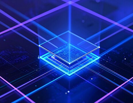 Abstract Neon Cybersecurity Network With Floating Cube Images