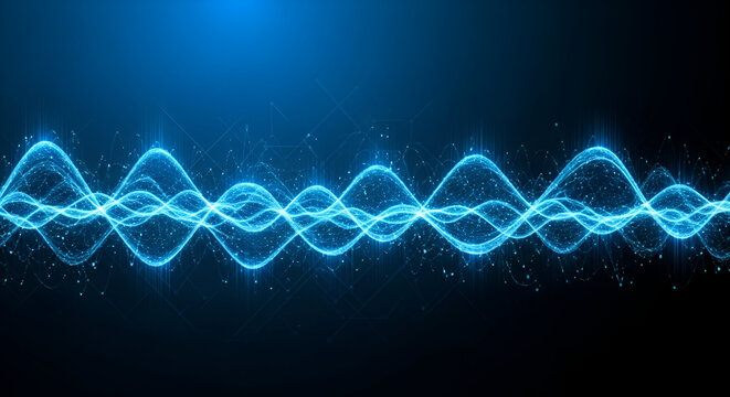 This is a digital background with waveforms and glowing particles, perfect for hightech and futuristic designs