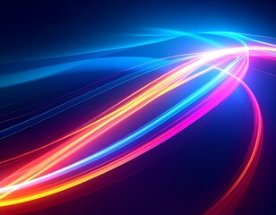 Dynamic neon light trails showcasing modern technology and futuristic data streams on dark background