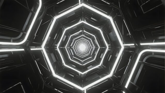 Abstract Neon Tunnel With Hexagonal Patterns Images