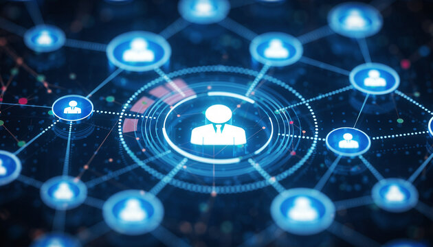 Digital Network: Illuminating the core of human connection with a glowing graphical representation, highlighting the essence of collaboration, communication and data exchange.