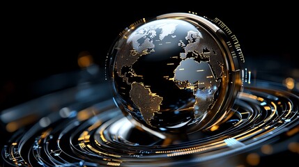 High-Tech Global Communication Interface with Stylized Earth in Digital Sphere and Futuristic Design Elements