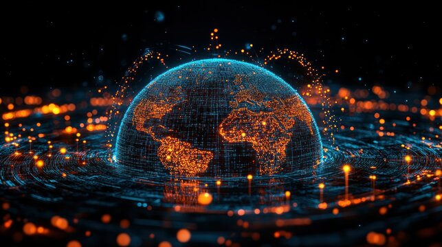 Stunning Visualization of Earth with Digital Connections and Glows