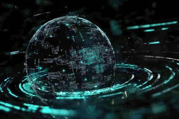 Futuristic globe with digital circuitry