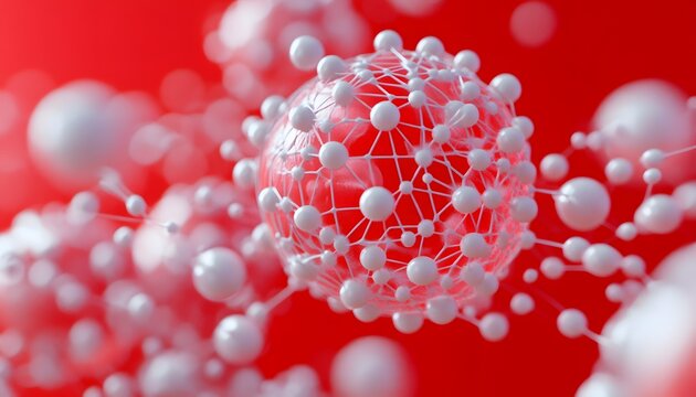 Abstract spheres connected red background