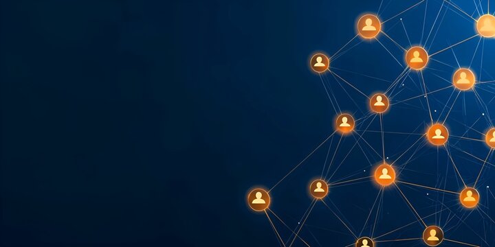 Man in dark suit holding glowing digital network with people icons and starburst business hand