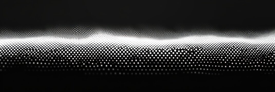 Smooth flowing white wave composed of fine mesh dots on black background evoking a sense of fluidity and modern digital elegance