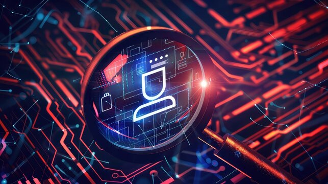 Human hand selects glowing profile icon on futuristic digital screen with blue user avatars and network background