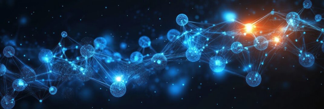 Abstract representation of a blue neural network with glowing particles, symbolizing advanced technology and artificial intelligence.