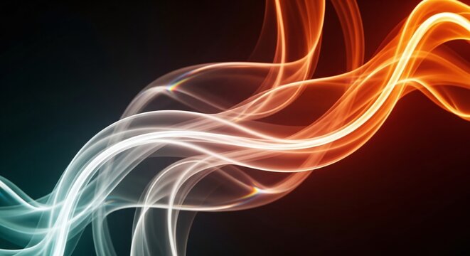 Abstract flowing lines of light in orange and white on black background