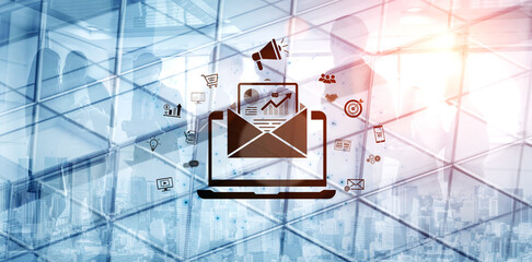 A visually captivating representation of digital communication with glowing email icons over a dark keyboard backdrop, symbolizing modern email interaction and technology.