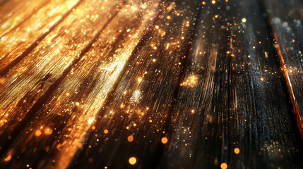 Vibrant wooden texture with glowing strings and bright sparkles