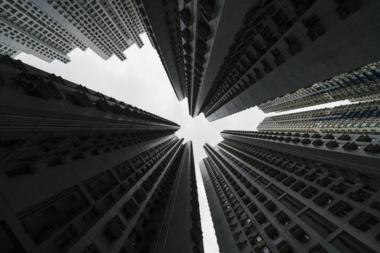 Skyward Ambition: A low-angle perspective of towering skyscrapers reaching for the sky, captured with a sense of awe and ambition. This abstract image evokes a sense of growth, potential.