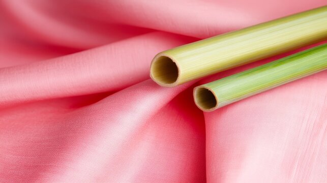 Intricate Yellow Ribbon with Red Pattern on Pink Background.
