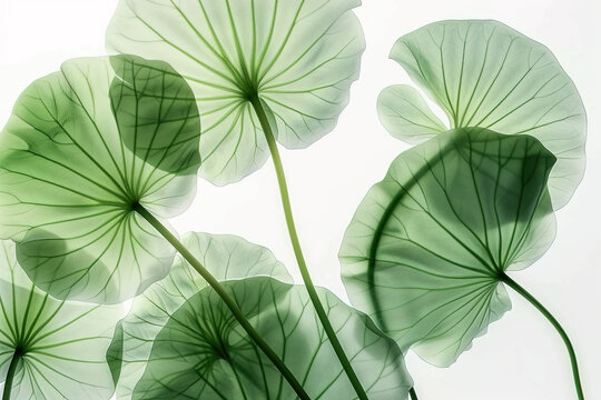 Green Centella Asiatica leaves on white background, macro detail