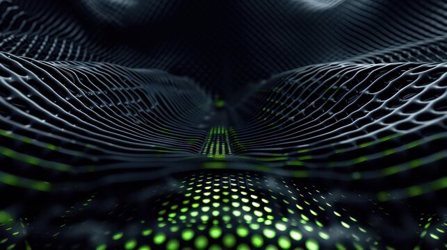 Dark plexus mesh with bright green accents, copy space in the lower center for text