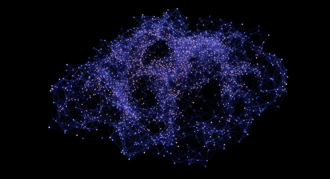 Abstract digital data network visualization on black background