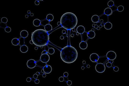 Abstract chemical formula with a glowing effect, floating on a dark, textured background, representing the complexity of molecular science.