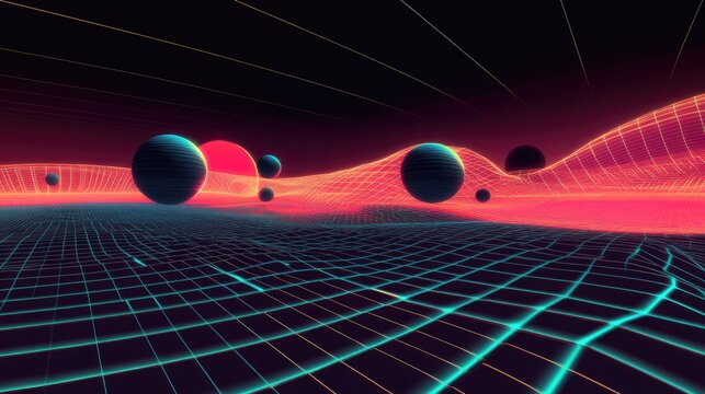 Holographic futuristic graphic with floating data streams, glowing grids, and abstract connections over a dark background.