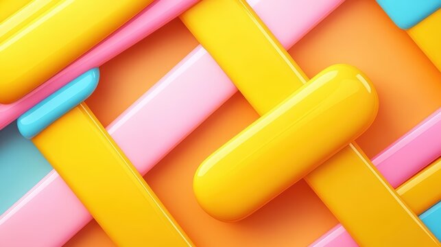 Abstract close-up of a vibrant interwoven pattern with glossy pastel-colored shapes on a soft peach background creating an artistic visual experience