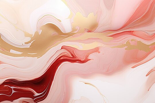 Background with fluid art texture. Backdrop with abstract mixing paint effect. Liquid acrylic artwork that flows and splashes. Mixed paints for interior poster. Orange, pink and red colors