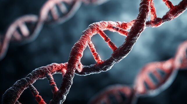 Stunning red DNA double helix for scientific research, medical breakthroughs, and genetic engineering projects offering a vibrant, modern look for biotech brands