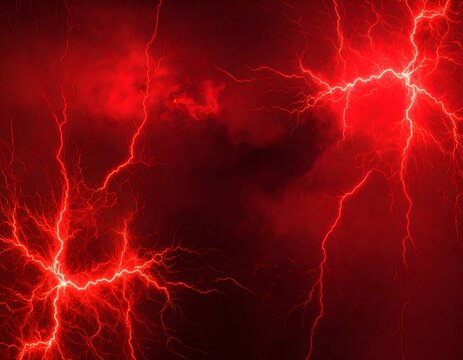 A vivid depiction of red lightning against a dark background, showcasing energy and power.