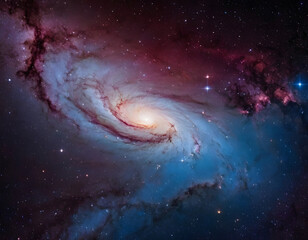 Space background with realistic nebula and shining stars. Pink and blue galaxy space background. Realistic starry night. Magic color galaxy. Infinite universe and starry night.