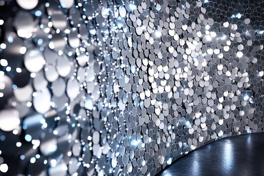 Luxurious silver sequin backdrop, shimmering scales,  shiny,  abstract