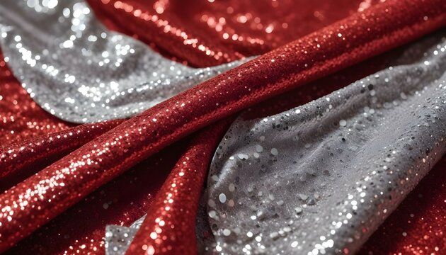 Stunning close-up of red and silver sequin fabric, shimmering with light and glamour.