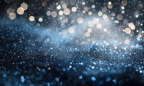 Defocused tele zoom light. Abstract silver bokeh glittering background