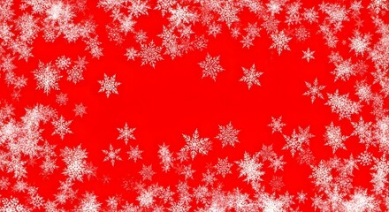 Falling white snowflakes creating a festive border on a vibrant red background for winter holiday designs and seasonal celebrations