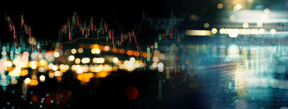 Digital stock market data with financial graph overlays
