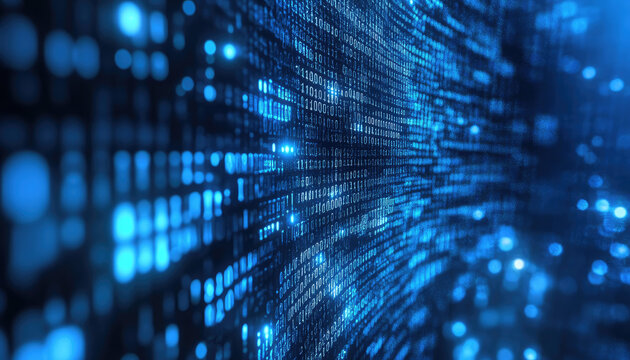 A mesmerizing display of glowing blue data streams flowing through an abstract digital grid, symbolizing complexity, connectivity, and the essence of modern technology.