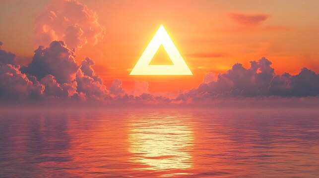 Glowing triangle at sunset over ocean, surreal seascape for backgrounds