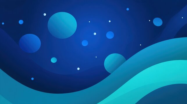 Abstract Blue Background with Waves and Circular Shapes for Creative Design, Digital Art, and Modern Aesthetic Use