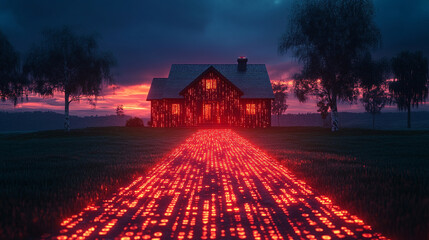 Creepy halloween pumpkin with spiders and binary code overlay for cyber spooky concept