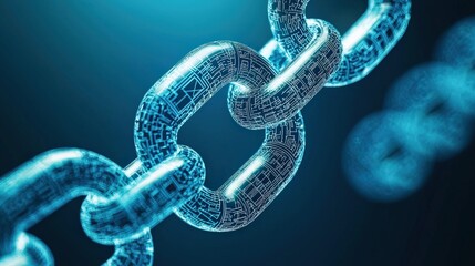 Efficiency increase speed analysis concept. Digital chain links glowing in a blue background.