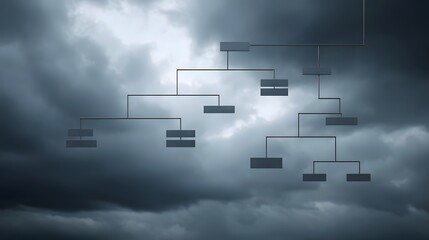 Organizational structure diagram against a dark stormy sky symbolizing complexity and challenges