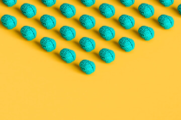 angle from blue brains on yellow background. 3d render