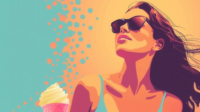 Flat vector abstract vector poster with theme of hot summer and ice cream