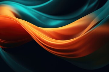 Abstract Orange and Teal Waves, Against a Dark Background - AI Generated