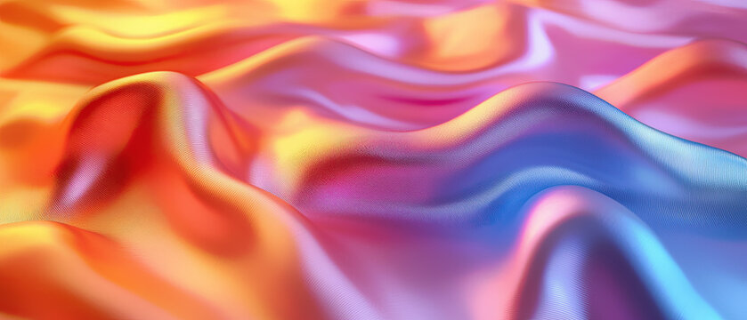 Abstract silk fabric background with smooth waves and folds creating a gradient transition from warm orange to cool blue colors with soft textile texture. Generative AI.