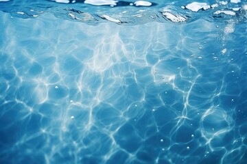 Blue water surface reflecting light, creating ripples and patterns underwater