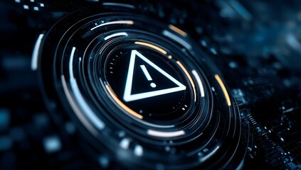 Digital Warning Sign in Futuristic Background