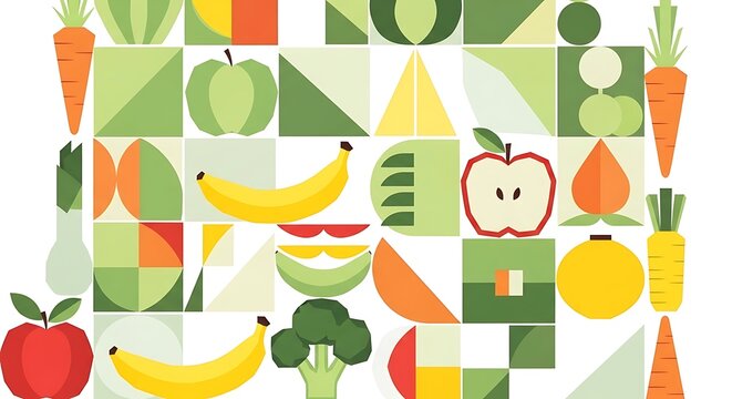 Geometric Fruit and Vegetable Mosaic - A Colorful Culinary Composition.