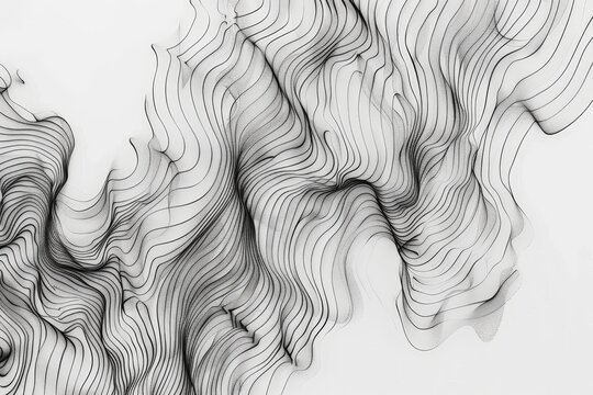 Black and white drawing with flowing wavy lines on a white background, Flowing lines creating a sense of movement