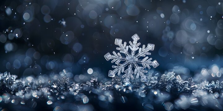 Captivating Snowflake Crystalline Design Against Dark Backdrop Showcasing Nature s Exquisite