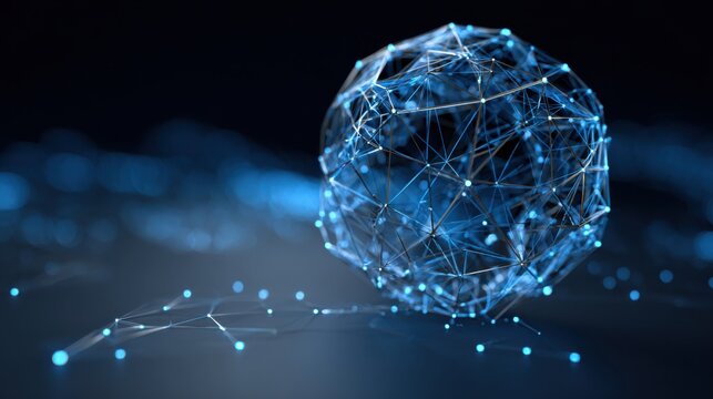 Abstract glowing digital network sphere representing data connection and futuristic technology.
